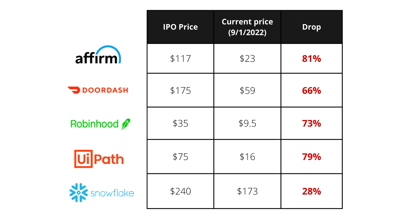 However, just like Amplitude’s stock price, the stock prices of many of these companies have crashed by 70-90% within a year of going public. While one can always attribute the crash to broad market correction, I want to reason that it is a standard pattern rather than an anomaly. This is not to say that these business don’t have solid fundamentals or a bright future. It’s just that buying it on the day it goes public is not the best idea.